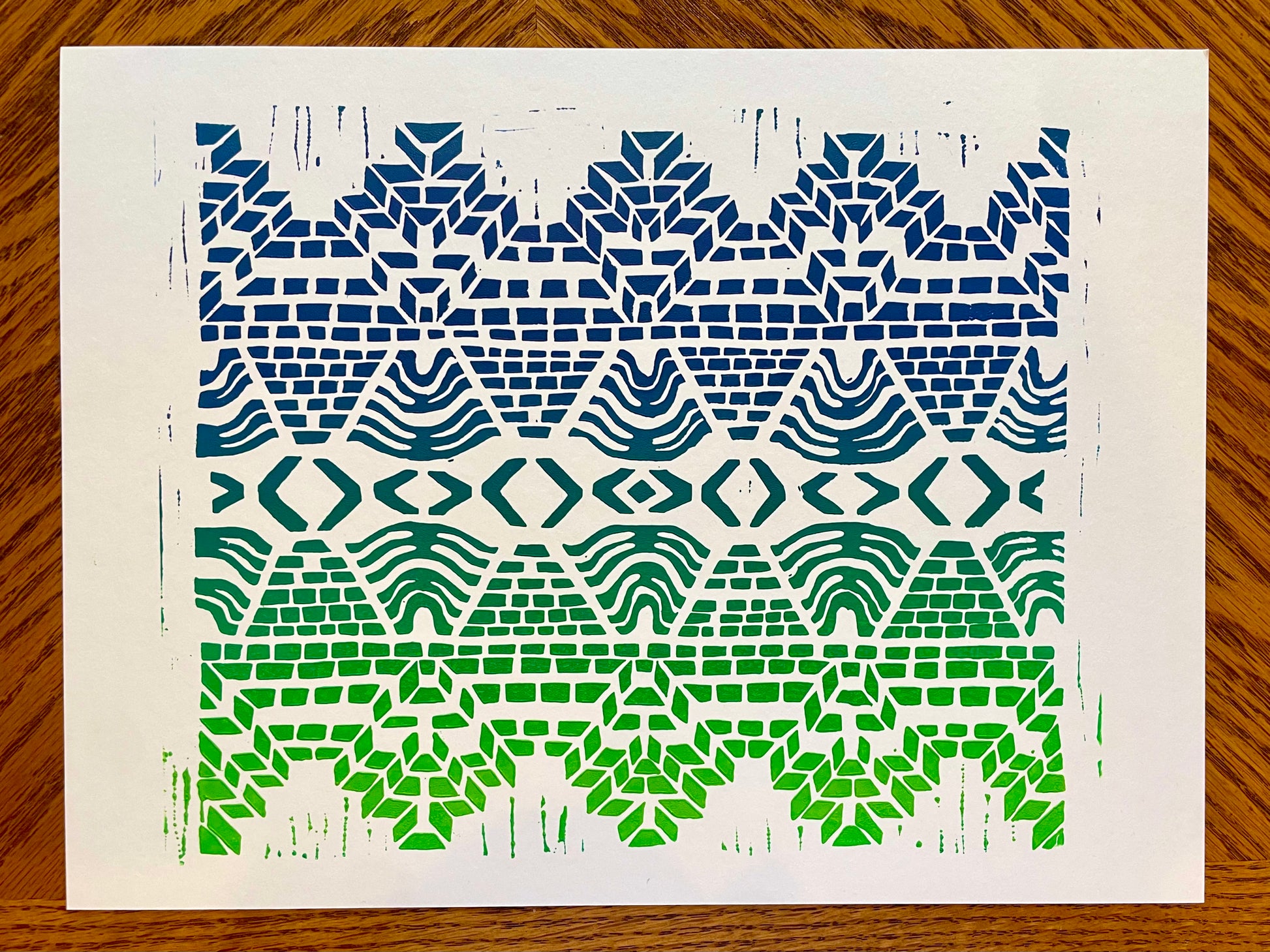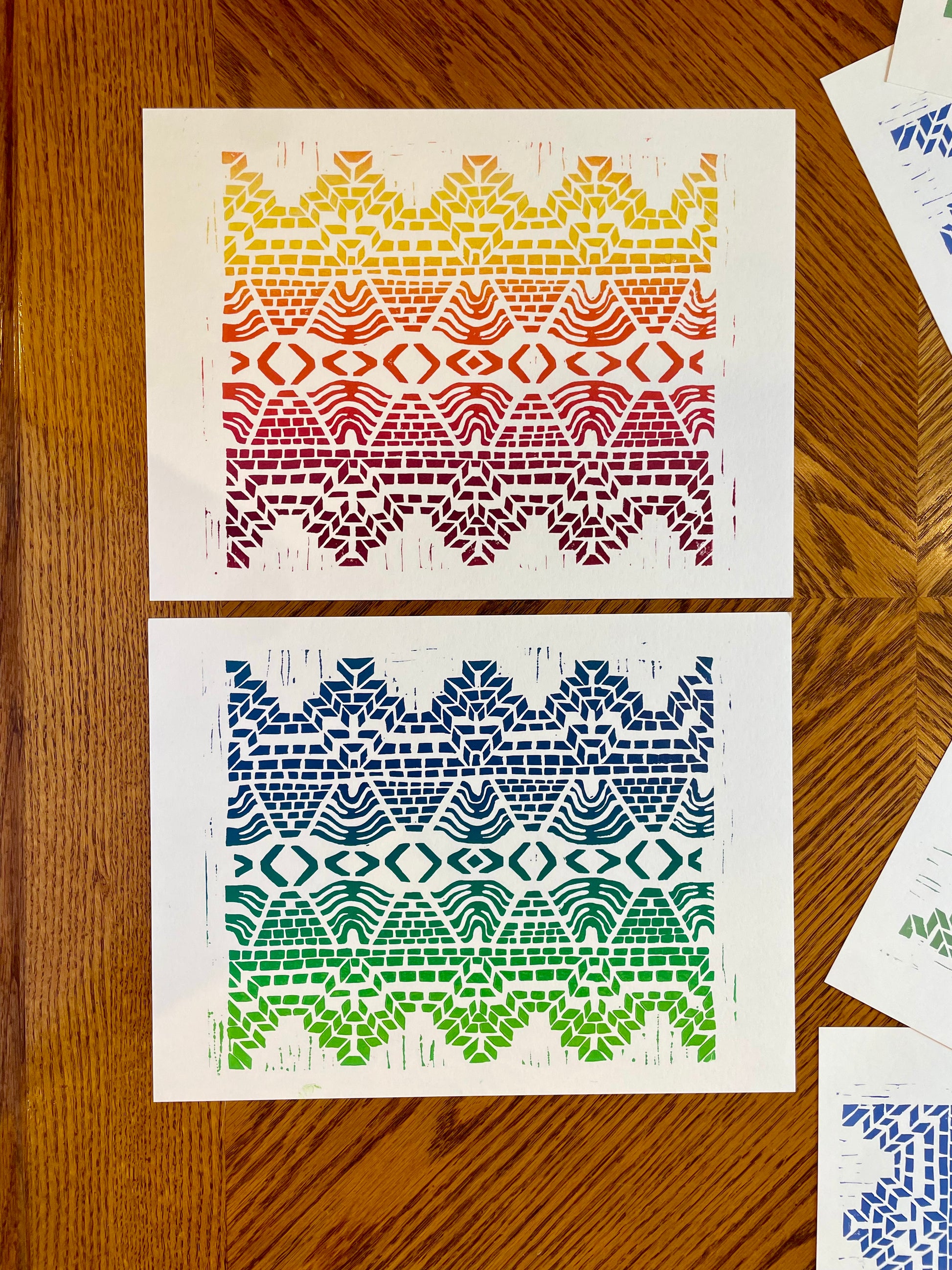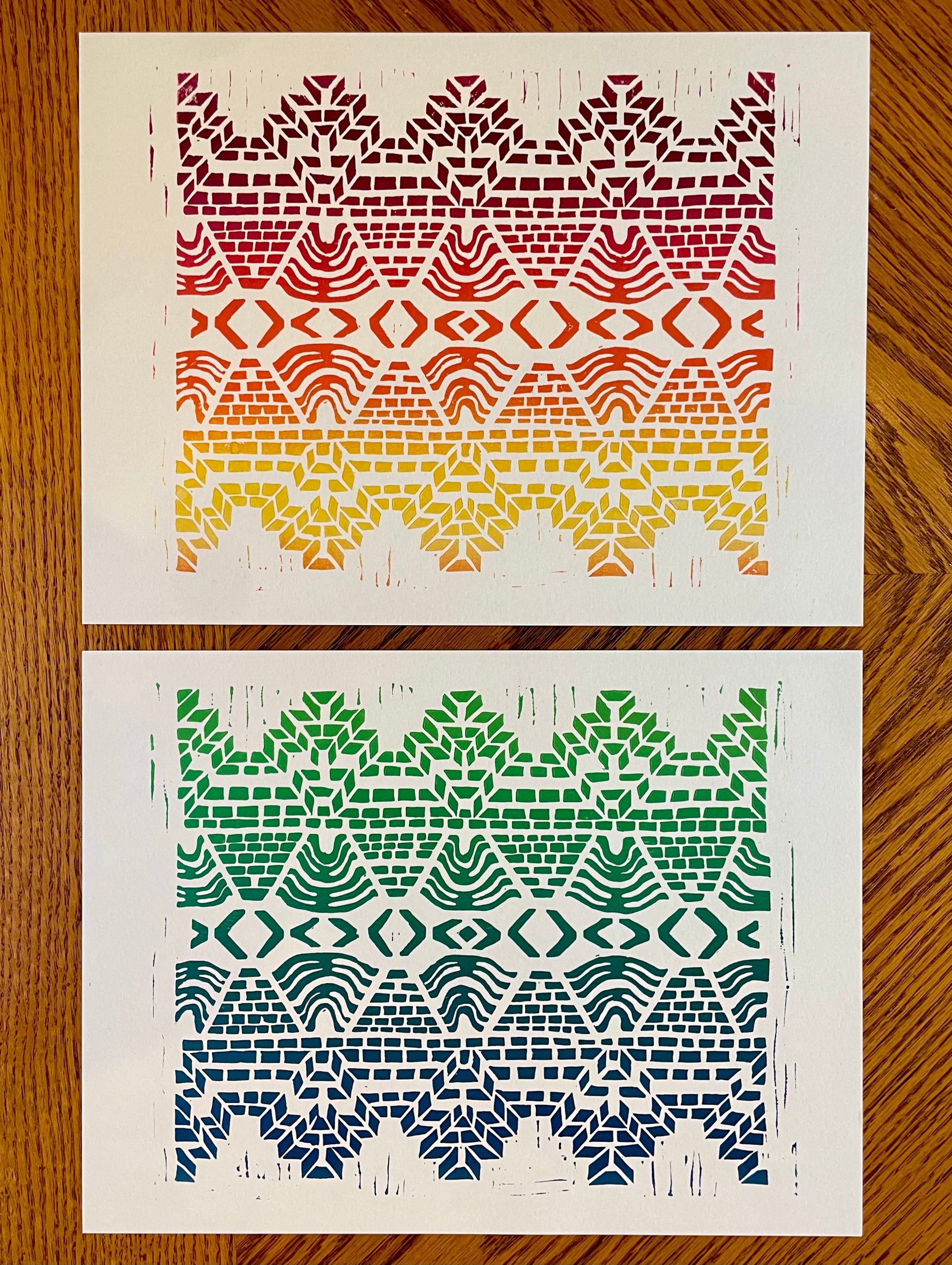 Hand block-printed on acid free, 140-lb 25% cotton paper. Each limited-edition print is signed and numbered by the artist, Holly Perry.